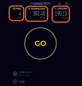 Klik tombol Go / Mulai, kemudian tunggu proses pengujian selesai. Hasil akan menampilkan kecepatan download, upload, dan ping.