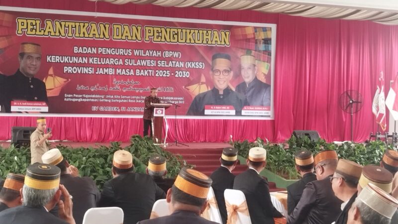 JAMBI – Gubernur Jambi Al Haris menghadiri pengukuhan Badan Pengurus Wilayah Kerukunan Keluarga Sulawesi Selatan (BPW KKSS) Provinsi Jambi periode 2025–2030 di Ev Garden, Sabtu (31/01/2026).