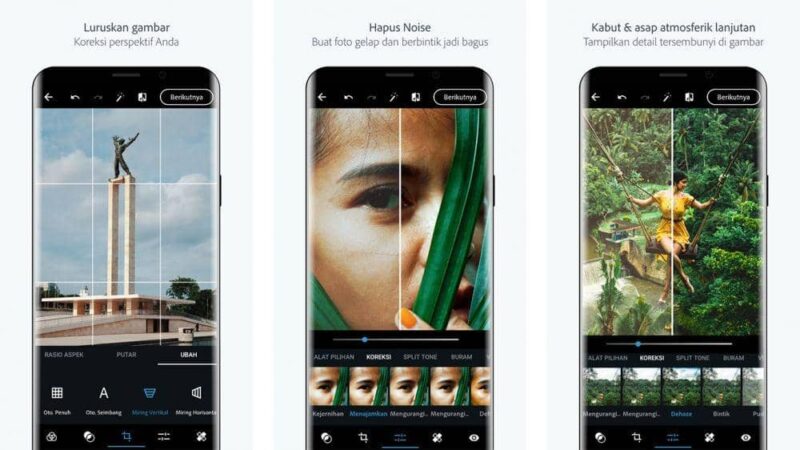 Lightroom adalah aplikasi profesional dengan fitur color adjustment dan presets.