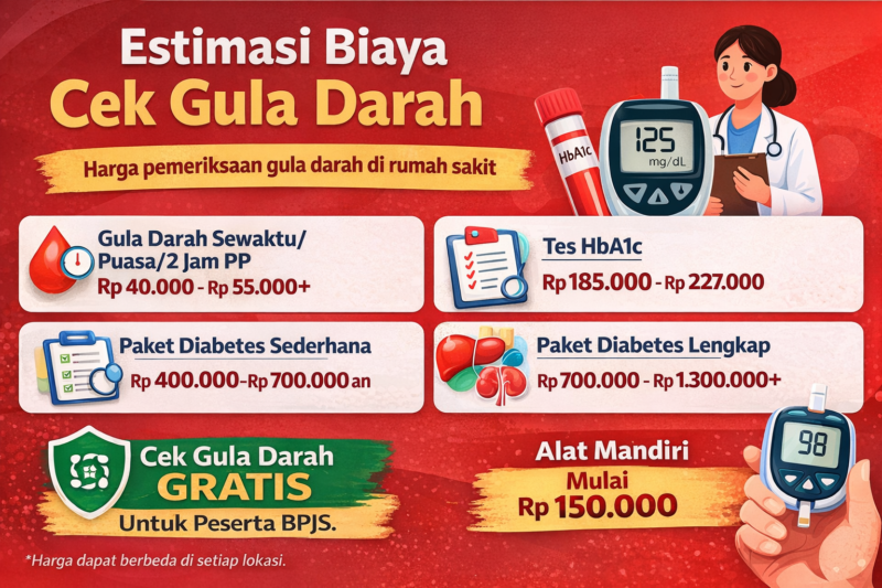 Gula Darah Sewaktu/Puasa/2 Jam PP: Sekitar Rp40.000 – Rp55.000 atau lebih, tergantung fasilitas kesehatan.