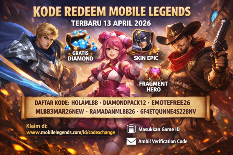 Jakarta-Kode redeem Mobile Legends: Bang Bang kembali menjadi buruan para pemain pada Senin, 13 April 2026. Sejumlah kode terbaru dirilis dan bisa ditukarkan dengan berbagai hadiah menarik mulai dari skin gratis hingga diamond tanpa perlu top up.