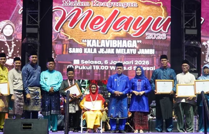 Bertempat di Taman Mini Melayu Jambi (eks MTQ), Selasa malam (6/1/2026), acara ini ditandai dengan penganugerahan Warisan Budaya Takbenda (WBTb) serta Anugerah Maestro Seni Tradisi kepada tokoh-tokoh budaya yang dinilai konsisten menjaga warisan Melayu Jambi lintas generasi.