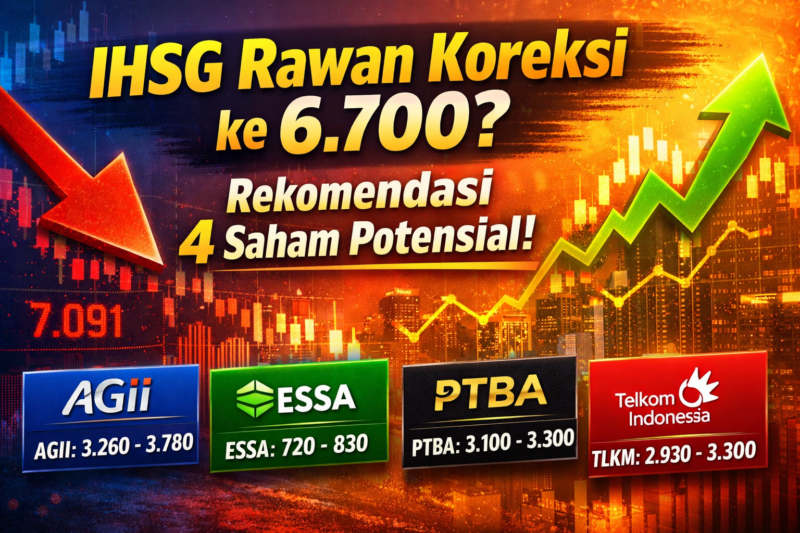 IHSG diperkirakan masih berpeluang turun ke kisaran 6.745 hingga 6.887. Namun demikian, terdapat skenario optimistis di mana indeks telah menyelesaikan fase koreksi awal sehingga berpotensi berbalik arah menuju level 7.450 hingga 7.779.