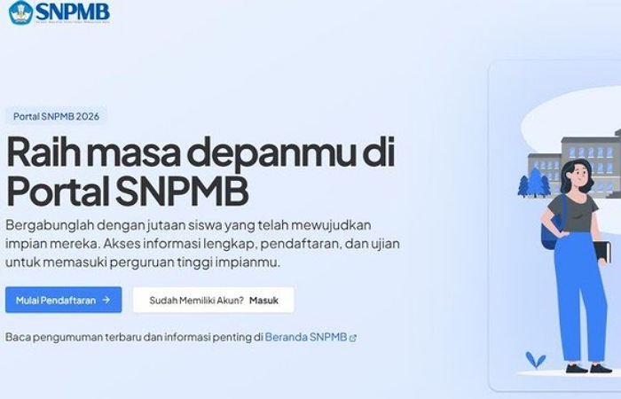 PENDIDIKAN–Pendaftaran akun SNPMB siswa tahun 2026 resmi dibuka pada Senin, 12 Januari 2026 pukul 15.00 WIB. Akun ini wajib dimiliki oleh peserta SNBP maupun SNBT sebagai syarat mengikuti seleksi masuk perguruan tinggi negeri (PTN).