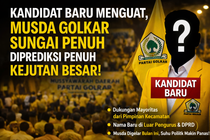 SUNGAIPENUH – Musyawarah Daerah (Musda) Partai Golongan Karya Kota Sungai Penuh diprediksi bakal berlangsung panas dan penuh kejutan. Munculnya kandidat baru di luar struktur pengurus maupun anggota DPRD disebut semakin menguat menjelang pelaksanaan pemilihan ketua.