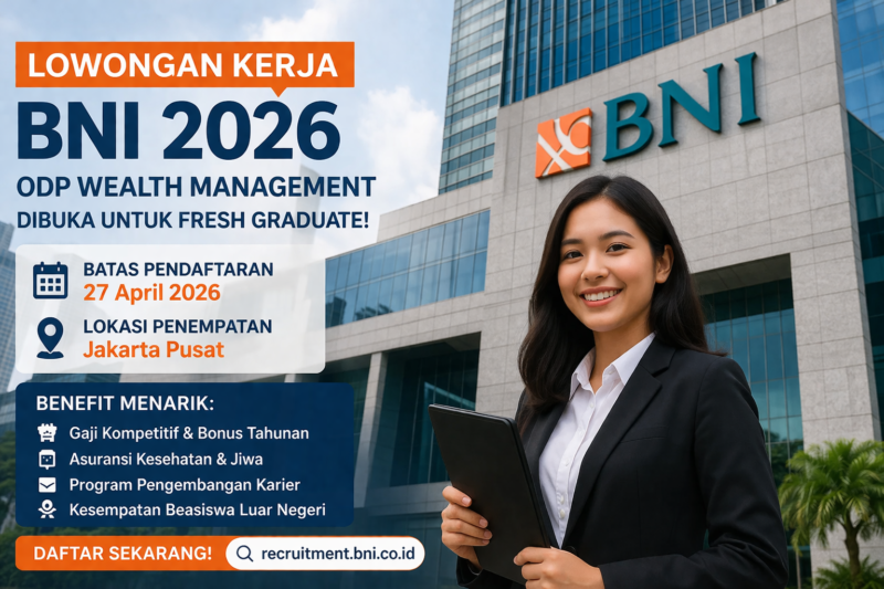 Jakarta-Program rekrutmen terbaru dari Bank Negara Indonesia (BNI) kembali dibuka pada 2026 melalui jalur Officer Development Program (ODP) Retail Banking Wealth Management. Lowongan kerja ini menjadi salah satu peluang karier paling diminati karena menyasar fresh graduate yang ingin masuk ke industri perbankan premium dan investasi.