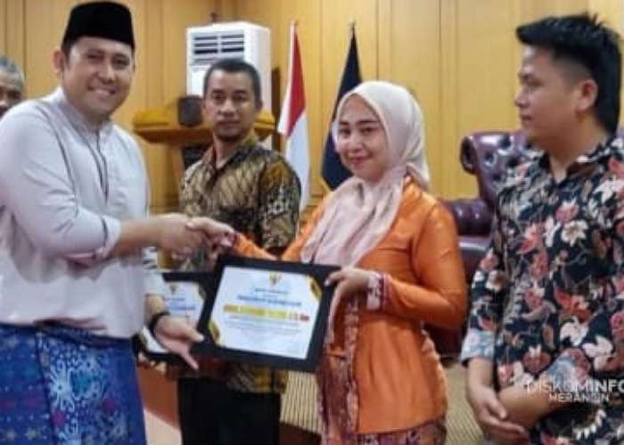 MERANGIN – Nurul Anggraini Pratiwi, putri dari almarhum Budi Vrihaspati Jauhari, menerima penghargaan dari Bupati Merangin, H. M. Syukur, atas perannya dalam proses pembebasan dan penjemputan Bilqis dari kawasan Suku Anak Dalam (SAD).