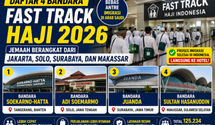 Nasional Daftar 4 Bandara Fast Track Haji 2026: Jemaah Berangkat dari Jakarta, Solo, Surabaya, dan Makassar