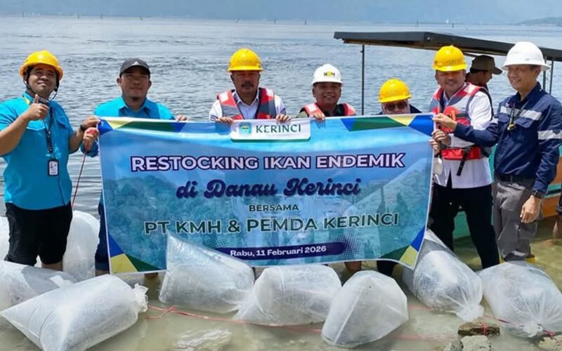 KERINCI – Upaya menjaga kelestarian lingkungan terus dilakukan Pemerintah Kabupaten Kerinci. Kali ini, melalui kegiatan restocking atau penebaran kembali ikan endemik di Danau Kerinci, Rabu (11/2/2026), pemerintah daerah menggandeng PT KMH sebagai mitra kolaborasi.