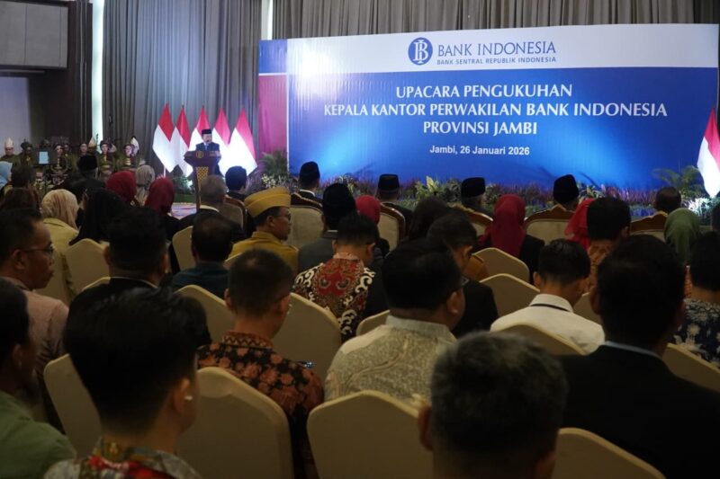 JAMBI — Gubernur Jambi, Al Haris, menegaskan komitmen kuat antara Pemerintah Provinsi Jambi dan Bank Indonesia (BI) dalam menjaga stabilitas ekonomi daerah, terutama melalui upaya pengendalian inflasi di berbagai wilayah kabupaten/kota. Hal itu disampaikannya dalam acara Pengukuhan Kepala Kantor Perwakilan Bank Indonesia Provinsi Jambi yang digelar di Swiss-Belhotel Jambi, Senin (26/01/2026).