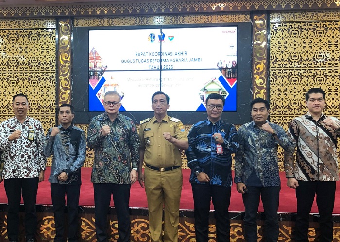 JAMBI — Pemerintah Provinsi Jambi kembali menegaskan komitmen penyelesaian konflik lahan melalui Rapat Koordinasi Akhir Gugus Tugas Reforma Agraria (GTRA) Tahun 2025. Pertemuan ini berlangsung di Ruang Pola Kantor Gubernur Jambi, Selasa (11/11/2025).