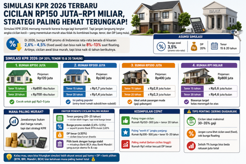 Simulasi KPR 2026 Terbaru: Cicilan Rp150 Juta–Rp1 Miliar, Strategi Paling Hemat Terungkap!